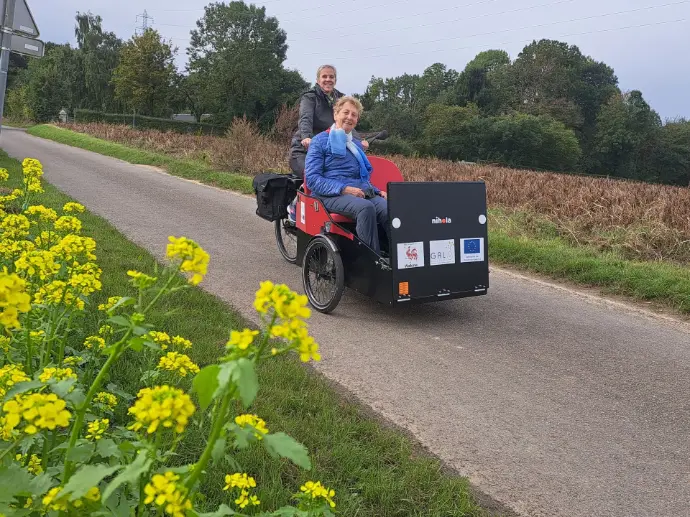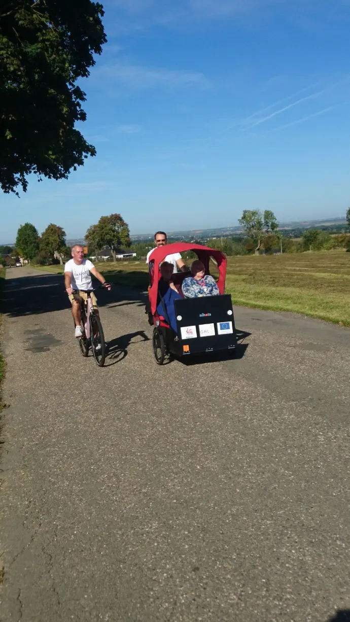 Le triporteur du GAL Basse-Meuse s'inscrit dans le projet "à vélo sans âge" et est mis à disposition des aînés et des personnes à mobilité réduite de notre territoire pour leur offrir le plaisir retrouvé que procure un déplacement à vélo.